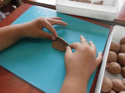 図工では,粘土を使いました。握り方やつまみ方を工夫しながら,たのしい形を作っていきました。