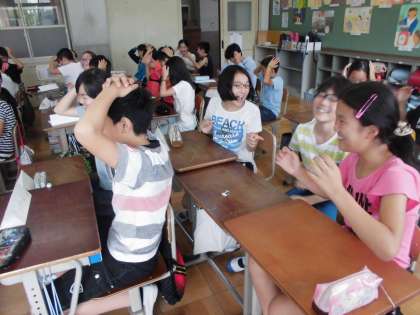 最後はリスニングを使ったゲームを行いました。みんな真剣勝負。とても盛り上がりました。
