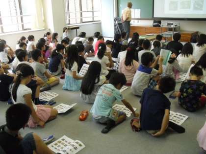 今日は、多目的室に集まり4年生みんなで「磯観察」について山本先生からお話をうかがいました。しおりに綴じてある、磯の生物の写真をながめながら、話を聞いている子ども達の心はもうすっかりみさきの家モードになっていたようです。「まだこをみつけたい。」「よろいイソギンチャクも見たい。」と思いはグーンとふくらんだようです。