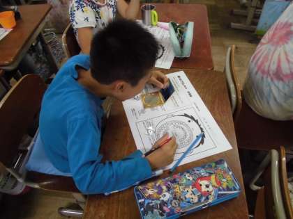 今日の6時間目に,3年生では歯の汚れ調べをしました。