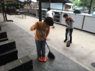 美味しい夕食を食べたあとは、もちろんお片付け。