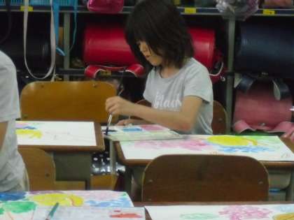 この日は,紫陽花の花を一つ一つ丁寧に彩色しました。できあがりが楽しみです。