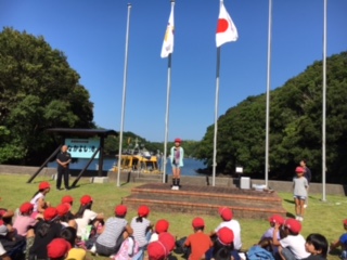 青空の下、歩きでなかよし港に向かいました。リーダーの皆さんも、たいへんしっかりとした言葉を述べ、向こうの先生方もびっくりしていらっしゃたそうです。