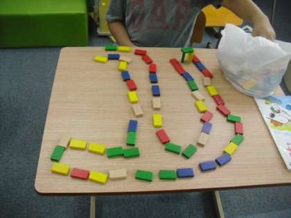 梅雨入りして、天候がすっきりしません。そんな時、中間休みに、ドミノが流行っています。NHKテレビのピタゴラスイッチに、子供たちの人気があり、それをまねて、ドミノを並べて遊んでいます。創意を凝らして、いろいろな造形を楽しんでいます。時々、ちびっ子ギャングがやってきて、せっかくの作品を壊してしまいますが、壊れればまた作ればいいさと、楽しんで作っています。