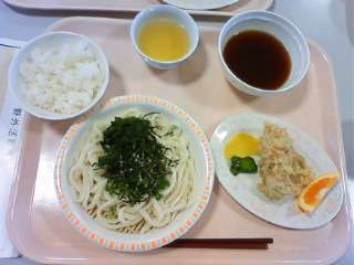 いよいよお昼ご飯です。ざるうどんと天ぷらのメニュー、朝が早かったのでおなかペコペコです。いっぱいいただきました。
