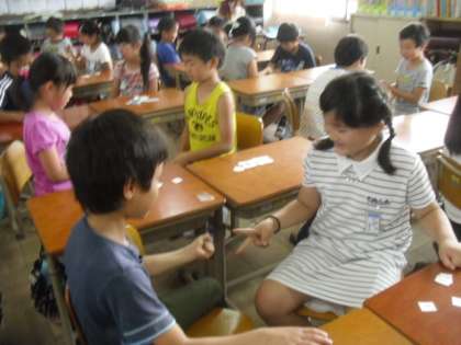 最後には,10点のカードを一人10枚持ち,じゃんけんをしてカードをあげたりもらったりするゲームをしました。