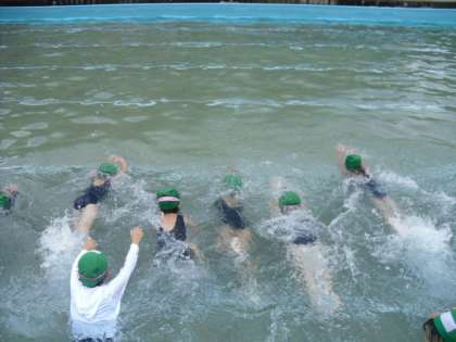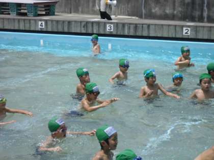 今日は,とても暑く,水泳学習にはばっちりの天気でした。気温も水温も30度をこえ,水もぬるい感じでした。これまで,寒く感じることが多かったので,今日は思い切り泳ぐことができました。ふしうきやバタ足を中心に頑張って泳ぐ練習をしました。プールの横を泳ぎ切ることを目指して練習していきたいと思います。