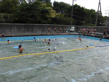 天候にも恵まれ,今週は昨日・今日と2回水泳学習を進めることができました。子どもたちも,平泳ぎの泳法を身に着けること,25mを泳ぎきることを目標に自分のめあてに合った練習場所を選んで一生懸命取り組んでいました。今日の練習で,25mを泳ぎ切ることができた子や25mのタイムが伸びた子など,うれしい姿がたくさん見られました。