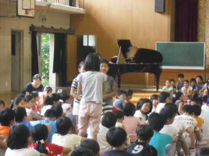リコーダーの演奏の後,5年生の感想を聞かれると何人かが手を挙げ,感想を述べていました。「タンギングがうまくできていて,すてきな音が出ていました」と,高学年らしい感想を述べていました。