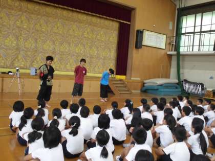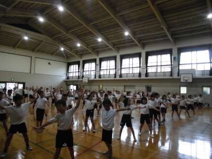 今日の5・6時間目に運動会で踊る「京炎そでふれ」の踊りの練習をしました。子どもたちは,京炎そでふれ普及部のお兄さん,お姉さんたちの踊りを見て,一生懸命振付を覚えようと体を動かしていました。「♪まるたけ えびす に おし おいけ〜」の通り歌など,京都ならではの工夫がたくさんある踊りとなっています。これからたくさん練習して,かっこよく踊れるように頑張ります!