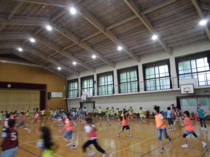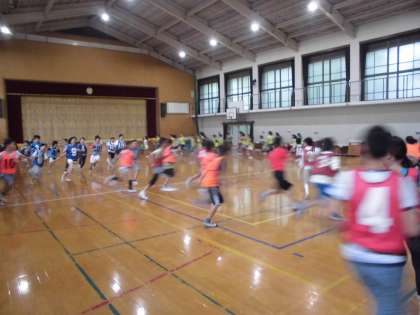 中間休みは学年全員で「三角おにごっこ」を行いました。