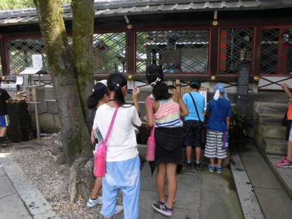 御香宮では,実際にインタビューをしたり,写真を撮ったりして,取材活動をしていました。