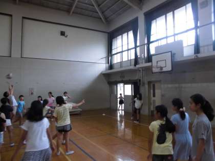 昼休みはドッヂボール。男女に分かれて白熱したゲームを行っていました。