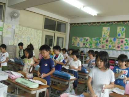 音楽の時間にずっと,歌いながらリズムうちの練習をしていましたが,今日はタンバリン・カスタネット・すずでリズムうちをしながら,歌を歌いました。それぞれの楽器の正しい持ち方・たたき方を学習した後リズムうちをしました。教科書に出ているリズムうちよりも難しいものにも挑戦してみました。みんな,なかなかリズム感がよかったです。