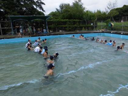 今日で4年生としての水泳学習が最後だったので,最後に,お楽しみとして全員で波を作って楽しみました。夏休みのプールにもぜひ,参加してほしいです。