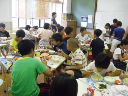 そのあとランチルームで食べた給食。暑さに負けず,楽しく美味しく頂きました。