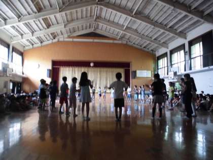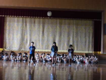 今日は4年生のかめのこタイムがありました。みさきの家でのそれぞれの活動の中での自分の体験と,そこから感じた思いを全校のみんなの前で落ち着いて発表できました。また,4年生全員で,キャンプファイヤーで踊った「マイムマイム」と「ジェンカ」を踊りました。みさきの家での学びを全校のみんなにしっかり伝えられたと思います。