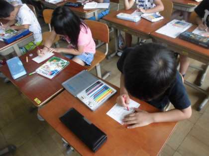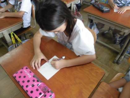 2年生は,国語の学習で,暑中見舞いを書きました。