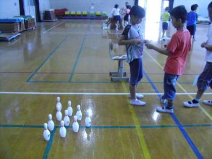 ボーリングでは,なかなかストライクが出せない様子でした。