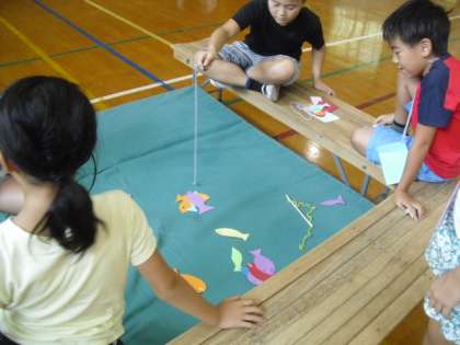 夏祭りの中の「ボーリング」コーナーと,「魚釣り」コーナーです。