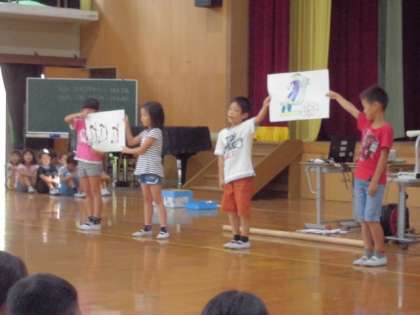 全校のみんながいる前で,緊張したと思いますが,一人ひとり,大きな声で発表することができました。