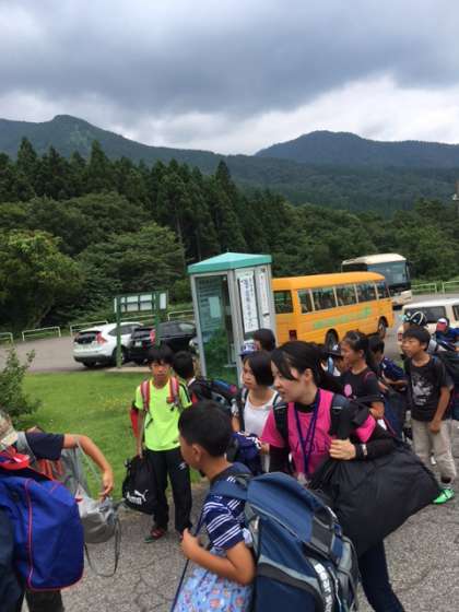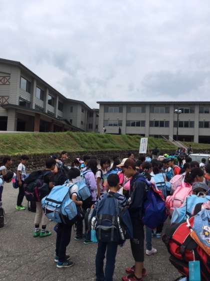 少しバスに酔った人もいたようですが、予定どおり「奥越青少年自然の家」に到着しました。