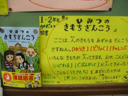 読書感想文の課題図書の紹介ポスターを作ってくださいました。本のカバーと簡単な紹介文を素敵なレイアウトで飾ってくださいました。子ども達もきっと引き付けられることでしょう。ありがとうございます。