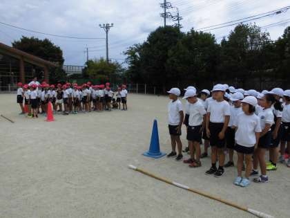 今日の台風の目の練習では、赤、白のチームごとに足抜きの練習をしました。列をしっかり整えて、掛け声をかけることを徹底しています。