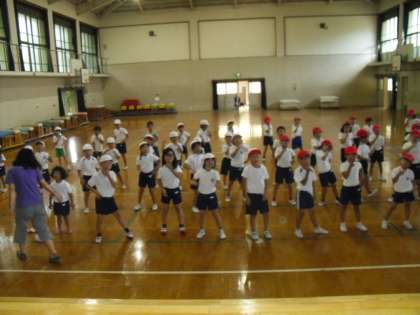 今日の体育は,体育館で団体競技のダンスの練習をしました。大変蒸し暑い中でしたが,2時間がんばりました。これまでに教室で映像を見ながら練習しましたが,その間にお家で練習している子もいたようで,ほぼ完ぺきに覚えている子もいました。何より,ねばり強く練習に取り組める子が多いことにうれしく思いました。運動会に向けて,練習を重ね,笑顔で可愛らしく踊れるようにしていきます。