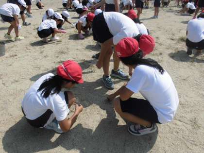 全校玉入れ集会の後,運動会に向けてグランドの草引きをしました。この日は特に強い日差しでみんな汗だくでしたが,がんばって草を抜きました。
