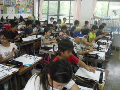 1文字を書く間に何度も墨を付けたり筆先を整えたりしないで,画と画のつながり(筆脈)に気を付けて,集中して書きました。