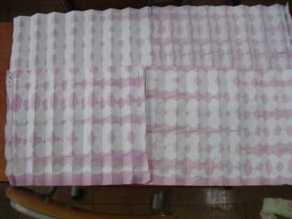 5時間目の生活科では,夏休み前や夏休みの間に咲いたアサガオの花の花を絞って,和紙に染めてみました。和紙を蛇腹織りしてから,染めました。素敵な色がついた和紙が出来上がりました。