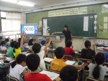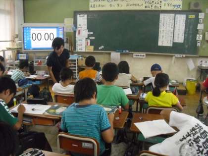 今日は,2組に来られている教育実習生の「寺川先生」に授業をしていただきました。「カンジー博士の暗号解読」ということで,クイズ形式での授業でした。子ども達は楽しく学習し,普段あまり使わない漢字をはりきって使っていました。
