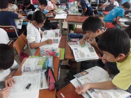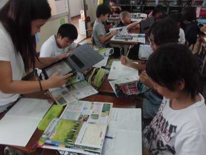 教科書や資料集を使って調べ,調べたことを発表する準備をタブレットを使ってやりました。
