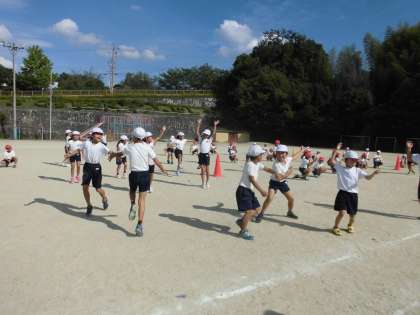 6時間目の体育では、運動場で台風の目の練習試合をしました。