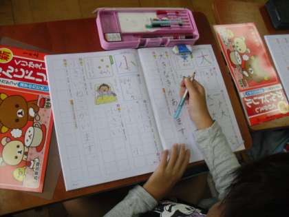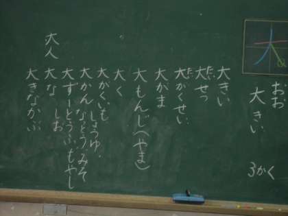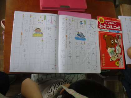今日は初めて,漢字学習ノートを使って漢字の学習をしました。「大」の3画目の右はらいが難しかったようです。みんな真剣に取り組んでいました。
