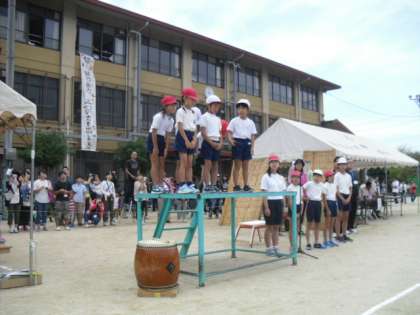 小学校初めての運動会みんなよくがんばりました。はじめのことばでは,六人とも落ち着いて言葉を言うことができました。