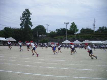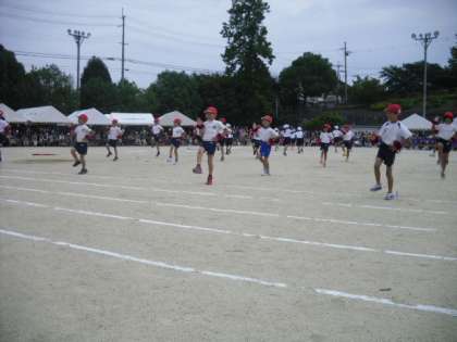 団体競技の「みんなであわせてみようかい」の入場のダンスでは,1年生の可愛らしさを生かして,リズムにのって踊ることができました。競技も力を合わせて,最後まで頑張ることができました。