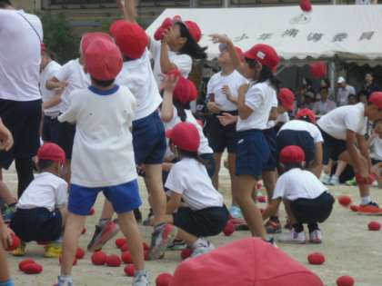 全校種目の玉入れは,玉入れ集会での練習から日が空いていましたが,入場や退場の仕方などのばっちり覚えていました。かごの中にどれだけ玉が入れられたかは、、、???ですが,必死でかごに向かって玉を投げていました。