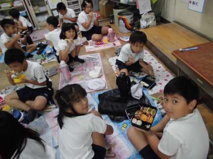 クラスでお弁当をおいしく食べました!!