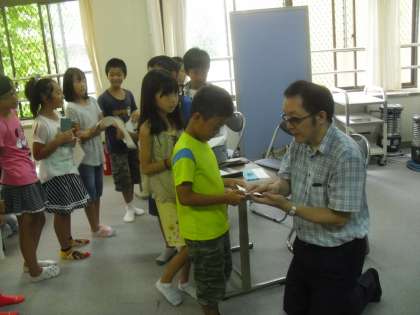 できた点字は,読んでもらいます。点字がしっかりかけていると名前を正しく読んでもらえます。