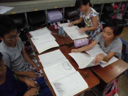 国語で、「ちいちゃんのかげおくり」の学習をしています。今日は2場面を役割分担をして班ごとに音読をしました。起こった出来事や、その時の登場人物の気持ちを考えながら読みました。その後みんなで交流し、まとめました。
