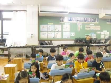 音楽で「こげよマイケル!」の演奏をしました。和音のひびきを感じながら演奏したり,歌ったりする単元です。今日は,リコーダー奏鍵盤ハーモニカ奏で,和音のひびきを感じながら演奏しました。