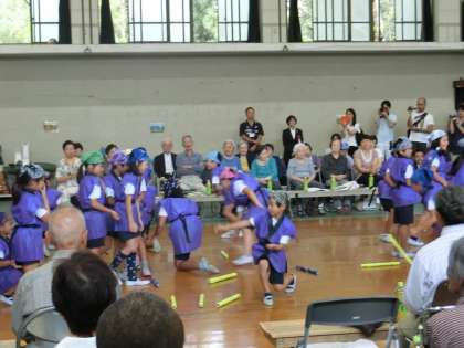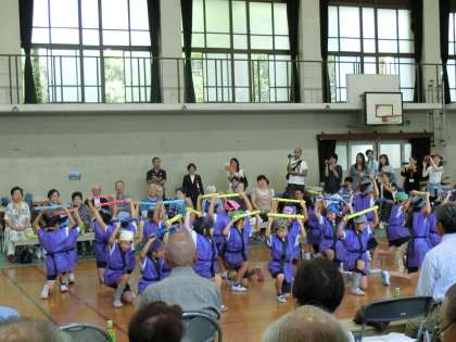 お年寄りの方々を前に,少し緊張気味の子どもたちでしたが,元気いっぱい笑顔で踊ることができました。