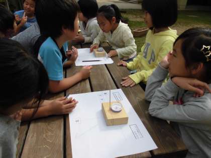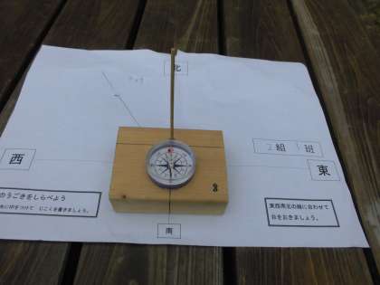 理科で「太陽の動き」を観察しました。1時間ごとに影のできる位置を記録して太陽が1日でどのように動くのかを観察しました。