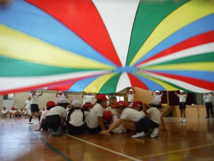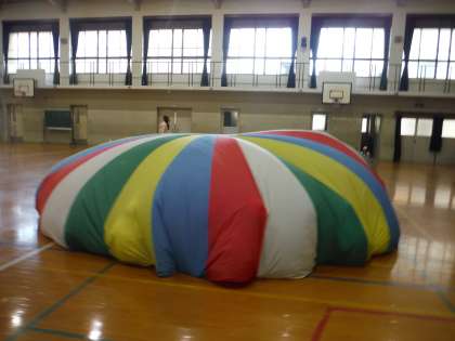 24日に、伏見西支部育成学級合同運動会を、藤城小の第2グランドで実施します。例年、藤城小の3年生が参加してくれます。3年生は、3班に分かれて、バルーンを持ってくれます。バルーンの下には、育成学級の子供たちが入ります。もちろん、3年生と一緒に持ちたいという子供もいます。バルーンを持って、グルグル回ったり、振り上げたり振り下げたりします。最後に全員がバルーンの中に入り、大きなバルーンを完成させます。育成学級の子供たちの中には、バルーンが激しく動くと怖いと思う子もいるので、優しくする必要があることを教えてもらうと、当初はバルーンをすることが楽しくて、力いっぱい振り上げたり振り下ろしたりしていた3年生が、見る間にやさしく動かしてくれたのて、驚きました。たけのこ学級のみんなも楽しく参加できました。当日も、育成学級のみんなのことを考えて、合同運動会のお手伝いをしてくれることでしょう。