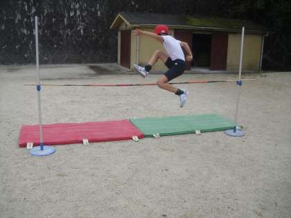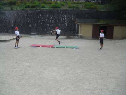 初めての高跳び。助走,踏切,空中の姿勢に気を付けて,