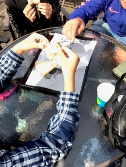 グループで決めていたお店に行って、珍しい料理に舌つづみを打っています。
