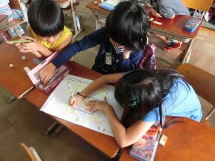 今日は,グループごとに集まって,おみこしのデザインを考えました。