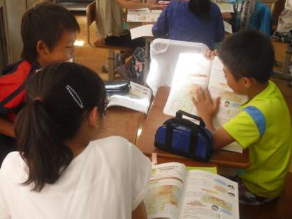 以前,浄水場の学習をした時に,「浄水場まで琵琶湖から水を運んでくる。」ことは学習していた子どもたち。今回はどんなふうに,どこを通って,それはだれがどのように作ったのかを学習します。